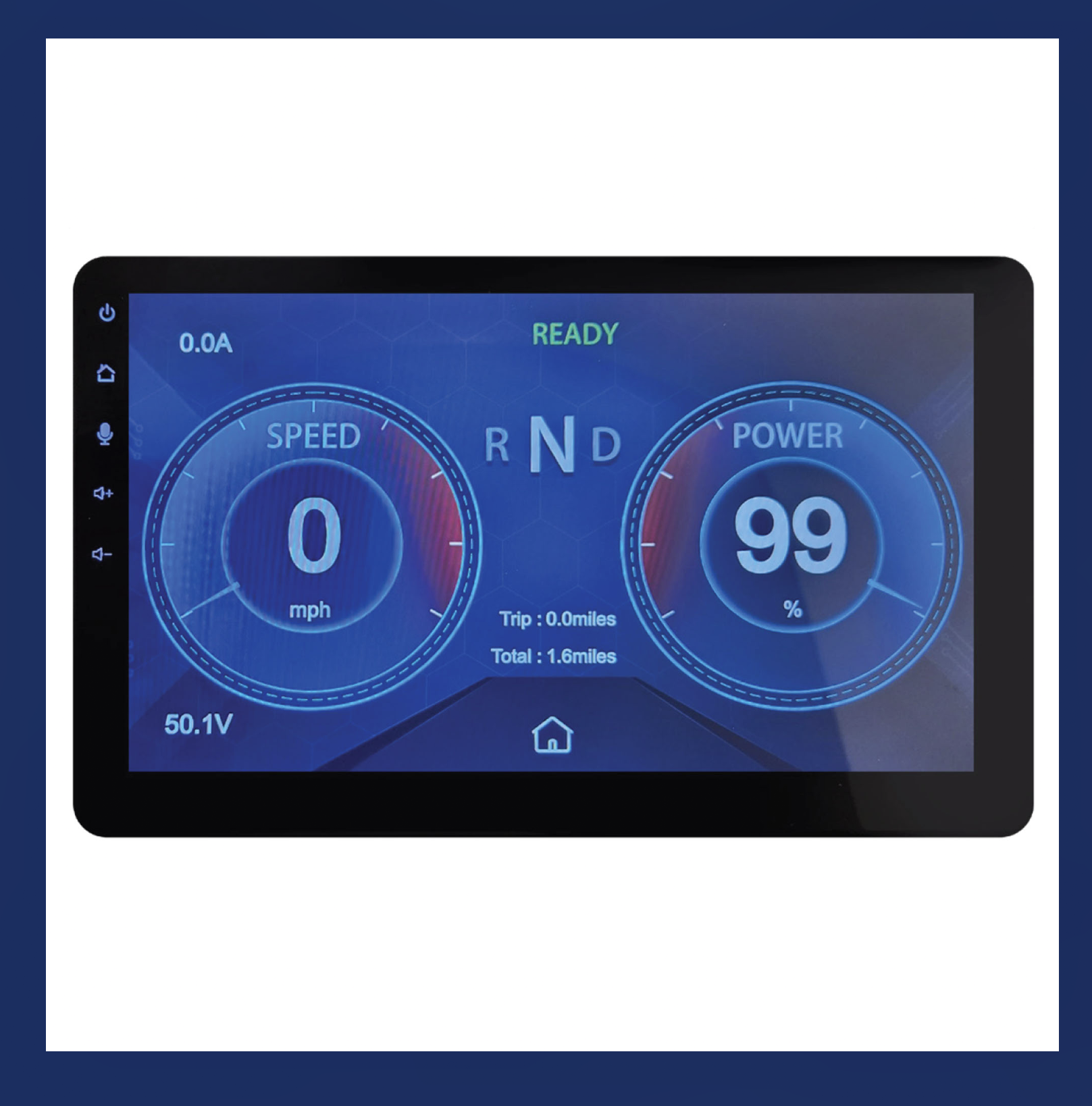 Navitas’ new 10" touchscreen brings modern automotive tech to your MOKE with real‑time system data, a clean interface, and integrated backup‑camera support.